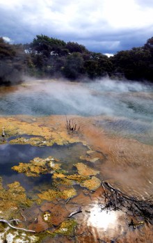 Previous Image Next Image New Zealand The high percentage of minerals makes for some beautiful colours in the hot pools