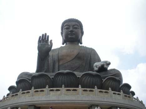 There is a buddhist temple beneath the statue