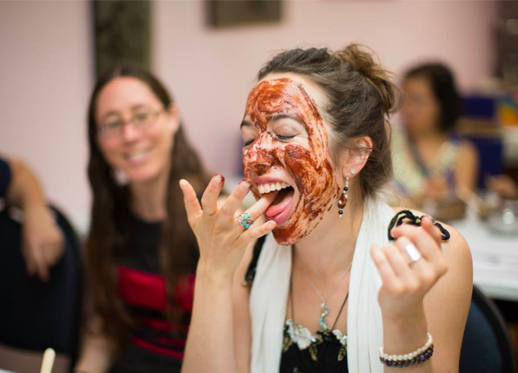 Eating the chocolate face mask